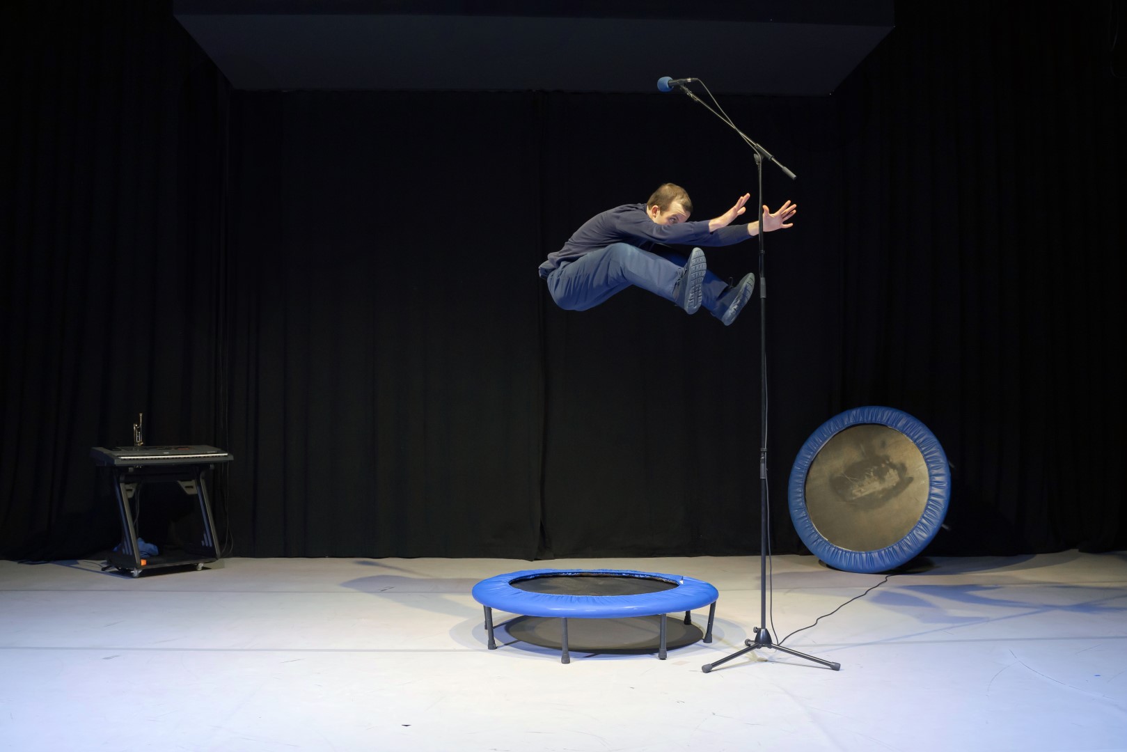 V představení se průměrný komik pokouší vyprávět vtip. Chybí mu však slova nebo správné nastavení mikrofonu. Potýká se s různými nedostatky, přijímá absurditu a využívá všechny prostředky, které má k dispozici, aby vytvořil komické momenty. Kombinuje tanec, cirkus, fyzickou komedii a manipulaci s předměty. Oslavuje umění vtipkování, pošetilost, syrový humor, komický chaos a krásu šťastné marnosti. Zve diváky do světa, kde se minimalismus setkává s excentricitou a hravá pošetilost má ve skutečnosti hlubší význam.